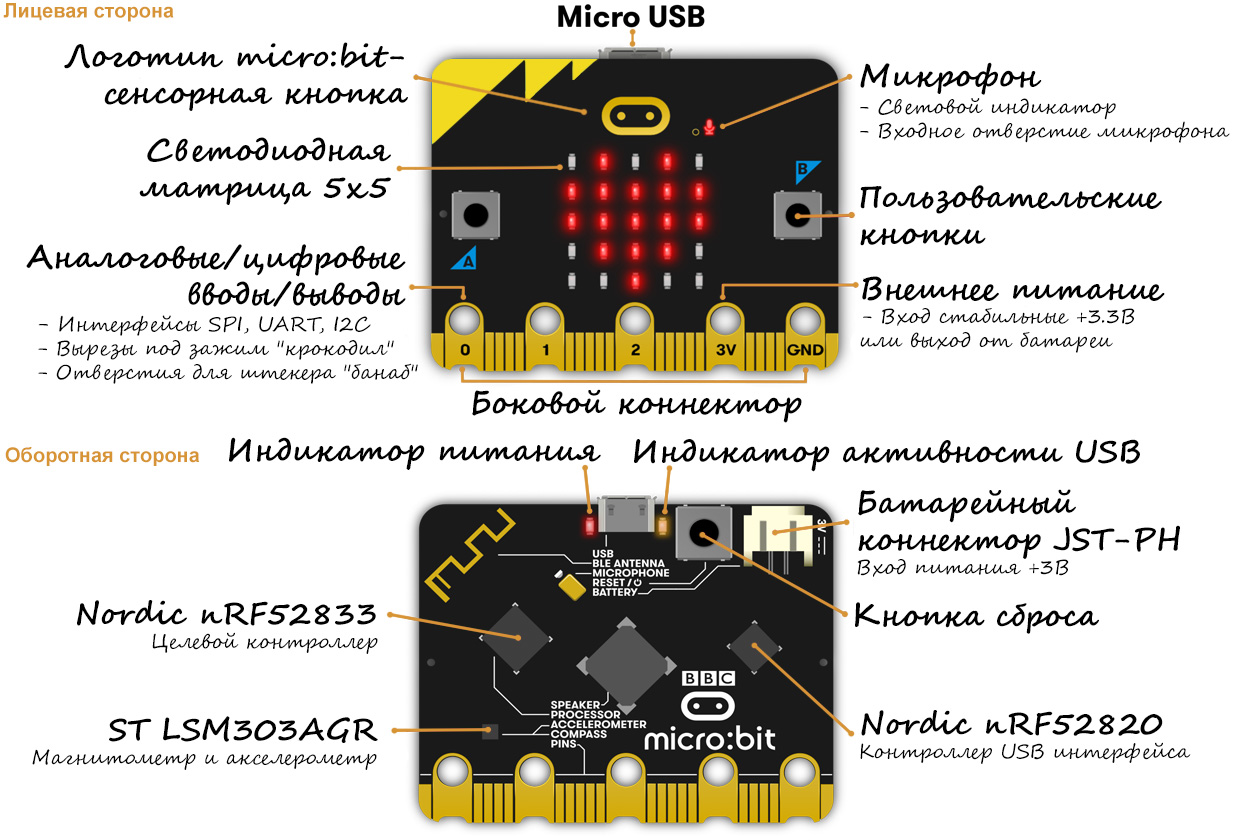 - Поддержка языков программирования: JavaScript (MakeCode), microPython, C/C++ (Arduino)