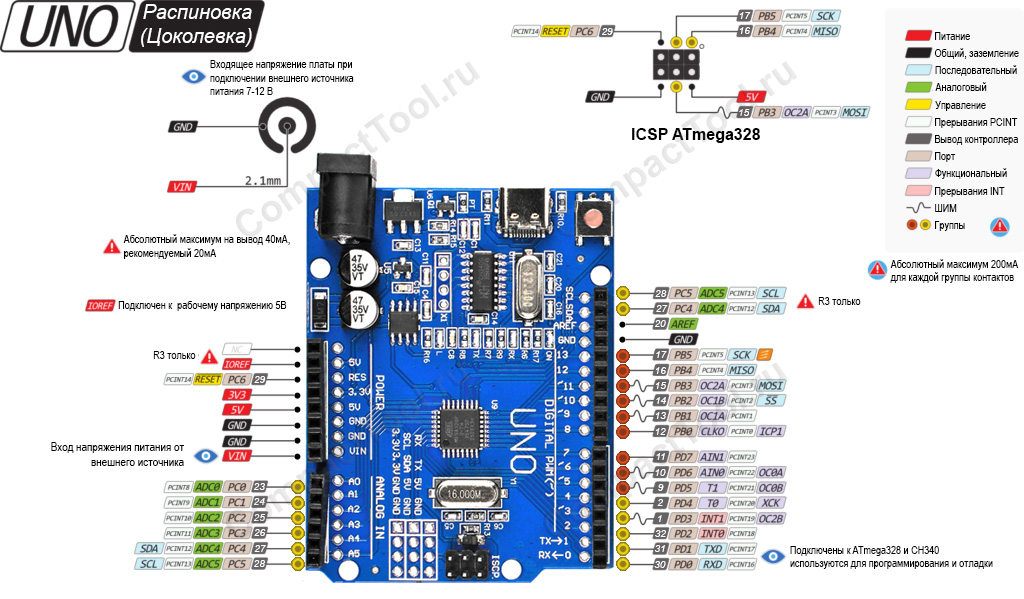 Распиновка (цоколёвка) контактов UNO R3