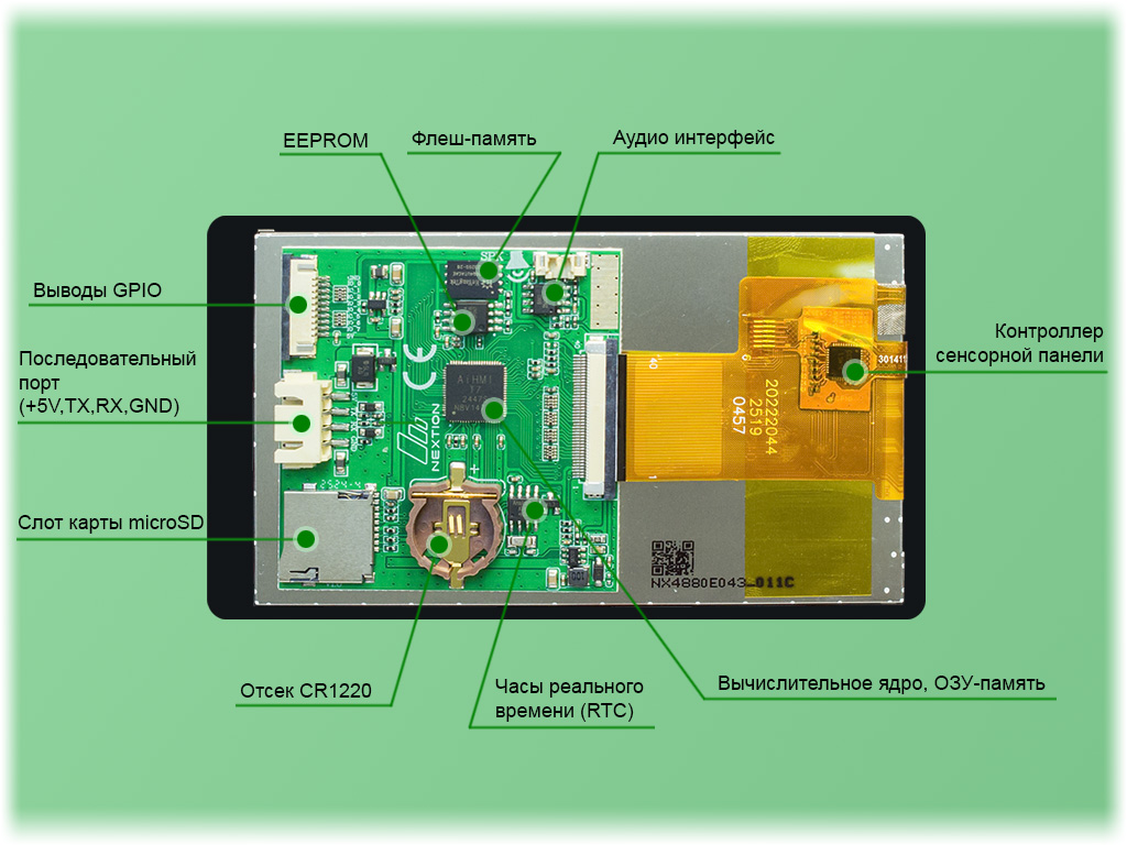 Обратная сторона модуля Nextion Edge NX4880E043-011C